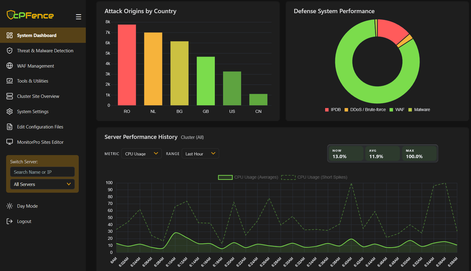 Gone are the days of hopping between servers, drowning in SSH sessions, and wrestling with tedious WordPress admin tasks. cPFence WebUI transforms server and security management into an effortless, unified experience. From real-time threat protection to streamlined administration, whether you’re managing a single VPS or hundreds of WordPress sites across a sprawling cluster, your life is about to get a whole lot simpler and safer.
