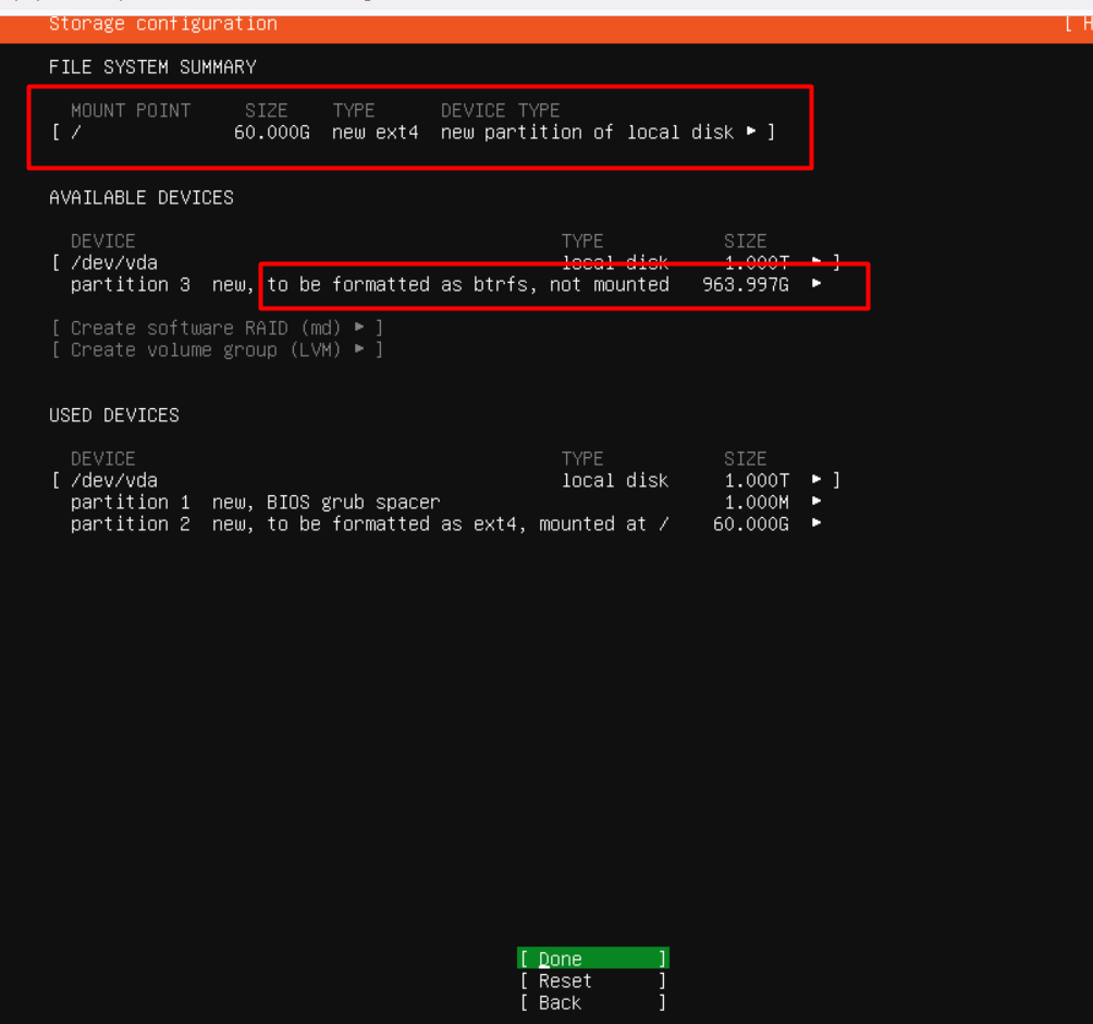 - Add the Backup Partition: Add a second partition with the remaining space, format it as Btrfs, and leave it unmounted.