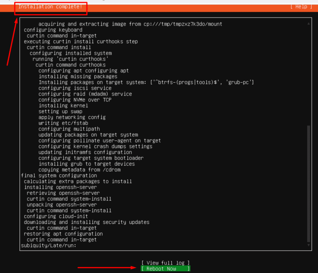 - Complete Installation: Wait for Ubuntu to install. When prompted, select “Reboot now.”