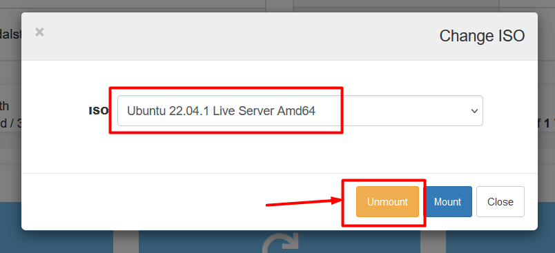 - Unmount the ISO: In the AlphaVPS client area, go to ISO and unmount it.